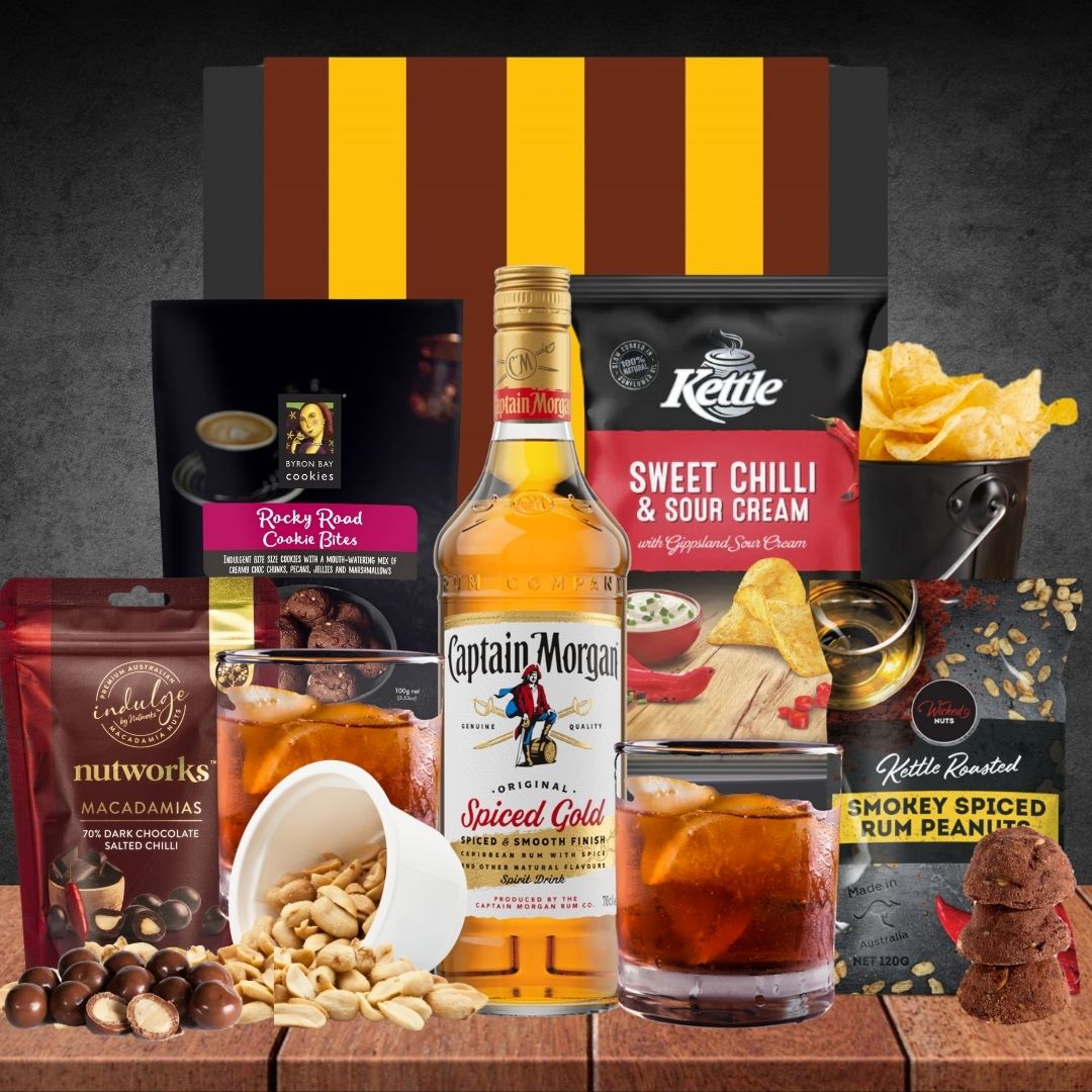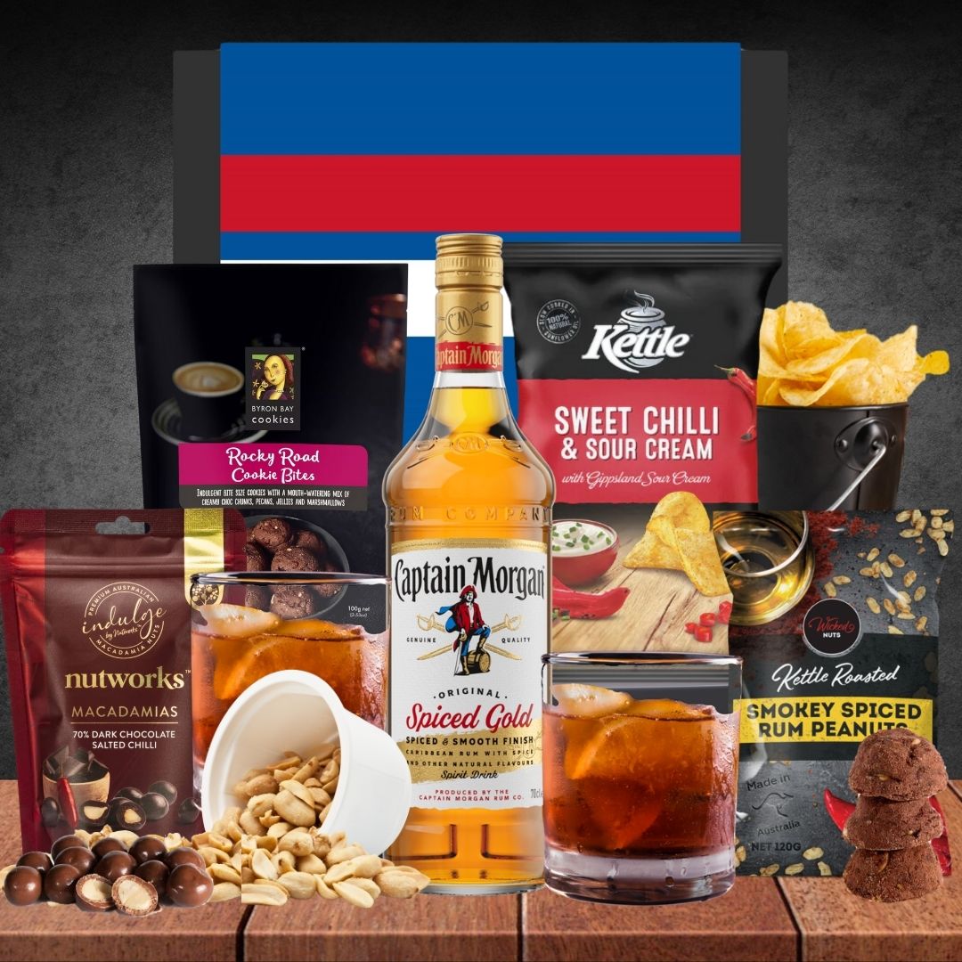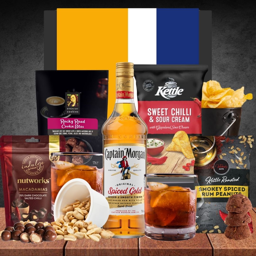 Watch your AFL gaming series with Captain Morgan Original Spiced Gold Rum right by you. This full-bodied rum is the ideal choice to savour each goal with your loved ones. This AFL season gets much better with classic Australian snacks such as chilis or green chips, spiced rum-infused peanuts and chilli macadamias. The hamper is a delightful addition to your games and can be shared with your loved ones.