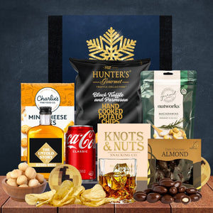 Featuring The Untold Story's Blended Scotch Whisky, this spirits Christmas hamper is perfect to send to your nearest and dearest. With a bottle of whisky from the Scottish Highlands, we've combined this with some scrumptious treats including classic pretzels, salty nuts, meaty jerky, and creamy chocolate.