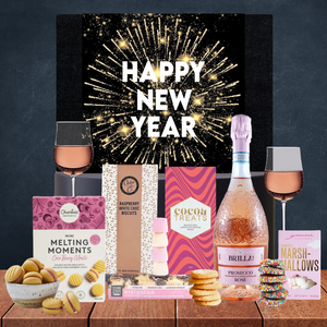 This is a stunning gift perfect for her New Year celebrations. Beautiful for the eyes and the tastebuds, this hamper comes with a delicious bottle of Brilla Prosecco Rosé, sweet chocolate, mouth-watering biscuits and fluffy marshmallows. It's simply divine!