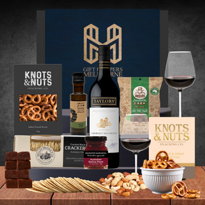 A Luxury Wine Hamper! Searching for the ideal gift to celebrate someone special? This delightful hamper, featuring Taylors Estate Cabernet Sauvignon, is the answer. It includes a tempting array of snacks,...