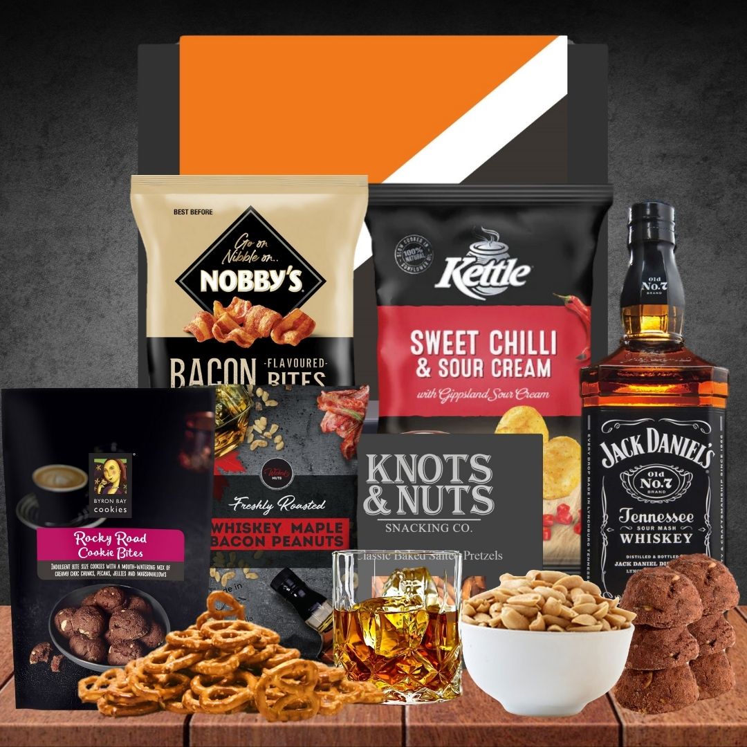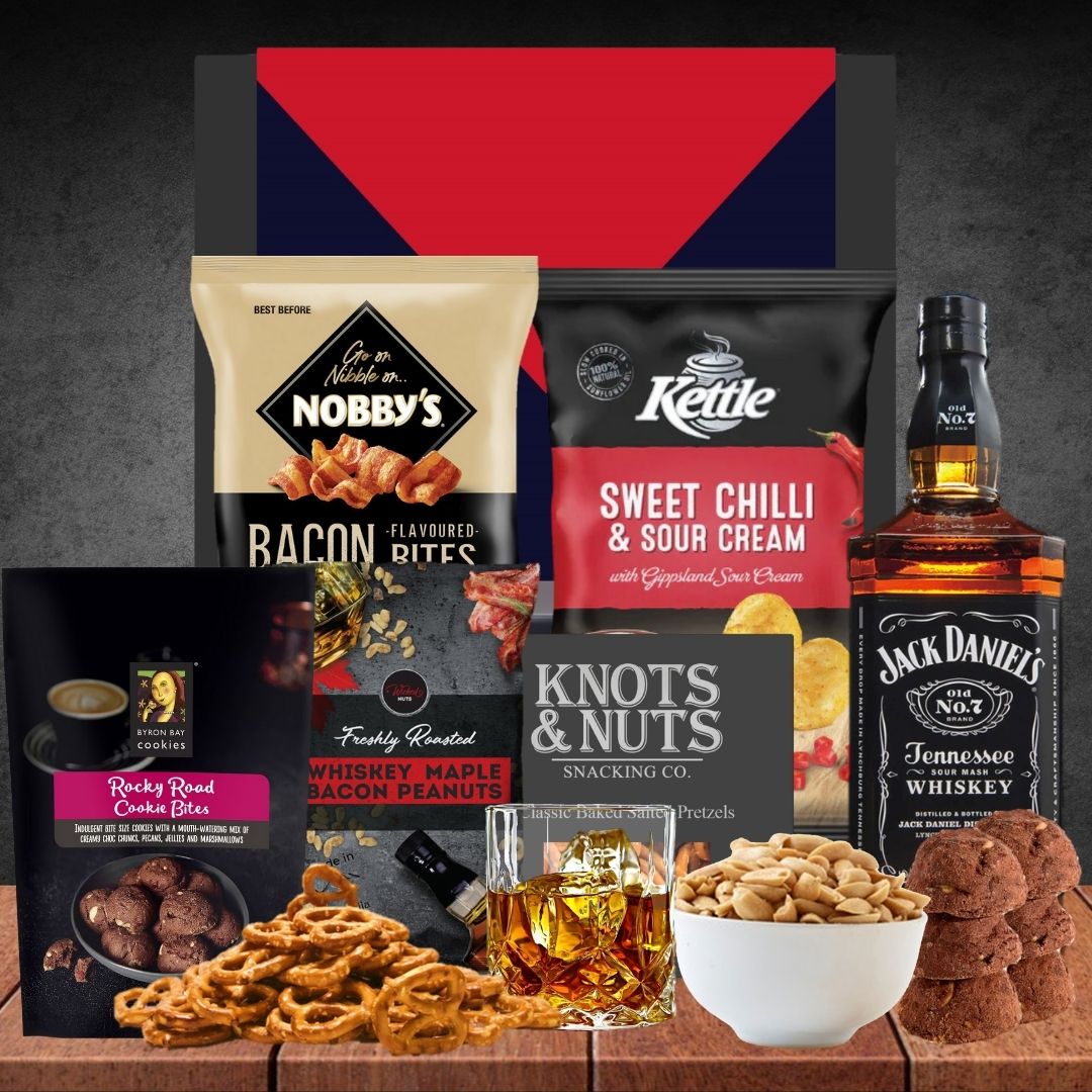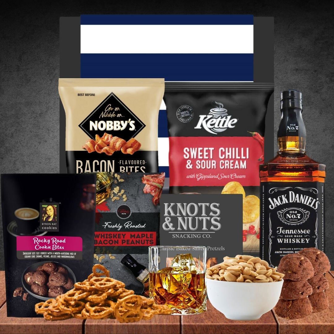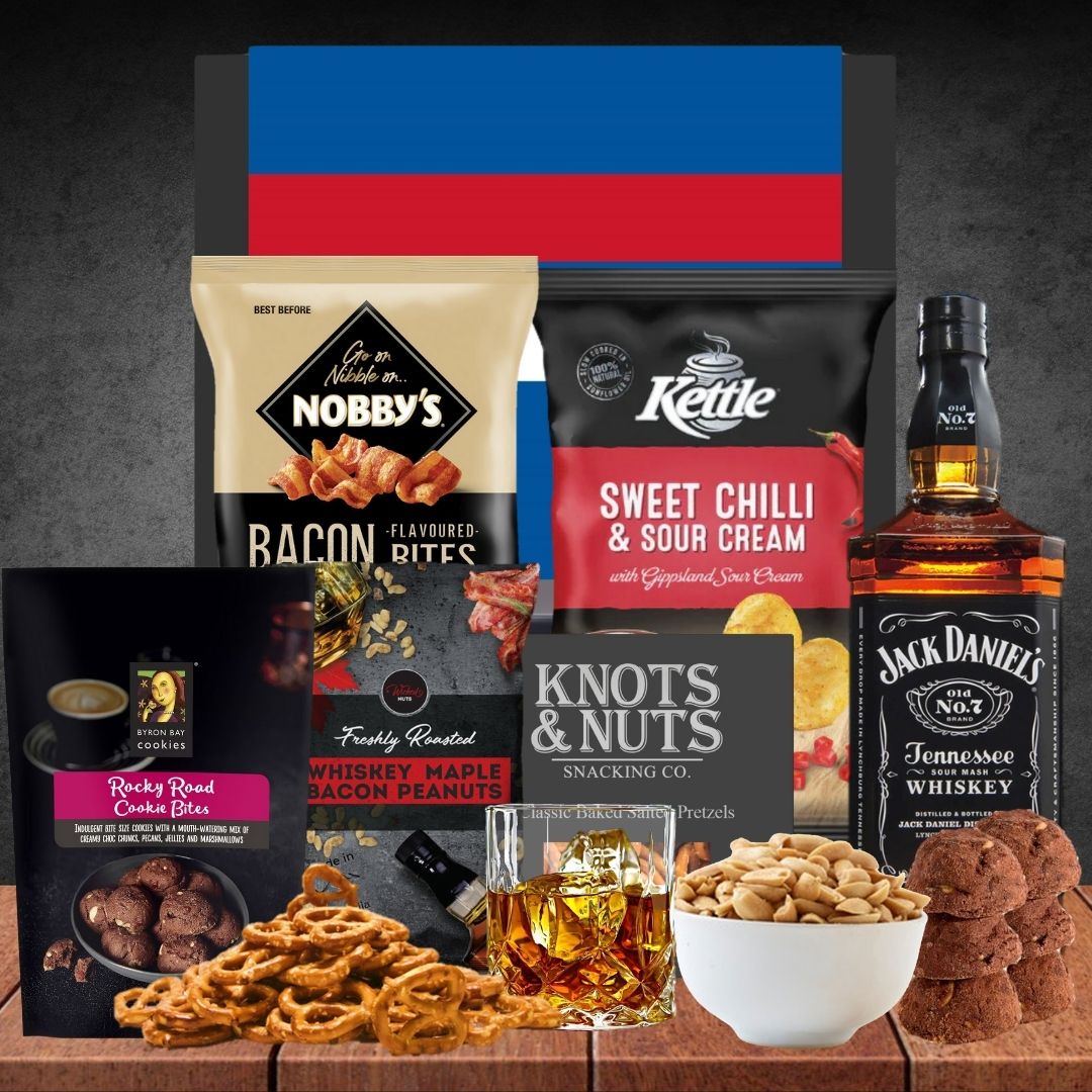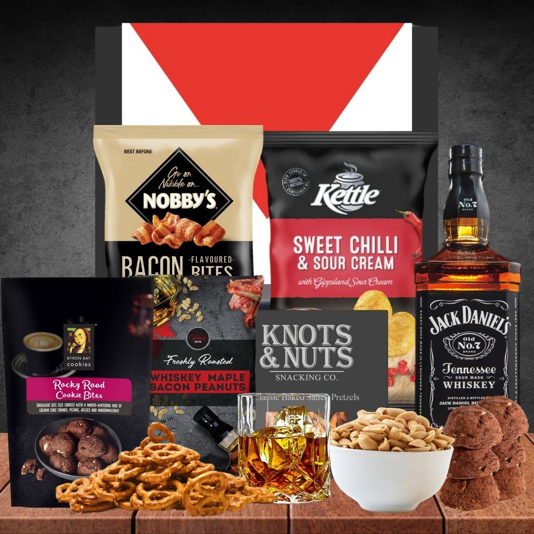 Celebrate the love for the game with this beautiful Jack Daniel's AFL hamper that we have the year. Featuring a classic bottle of Jack Daniels whiskey we've also included scrumptious snacks such as bacon infused peanuts, bacon bites, cookie pouches and more. Offering you the perfect balance of sweet and savoury, you can enjoy AFL with your loved ones like a pro!