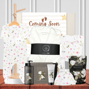 Be a supporting soul and welcome the new baby and the new mom gracefully. This gorgeous hamper features a delightful collection of items for the mum and the baby. Packed beautifully to capture your recipient's attention, you can find a white bathrobe, pamper sets, and bath salts alongside baby products such as cotton outfits, hats and bibs. This is just the kind of hamper every new born family would appreciate.