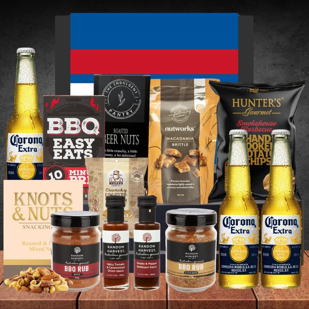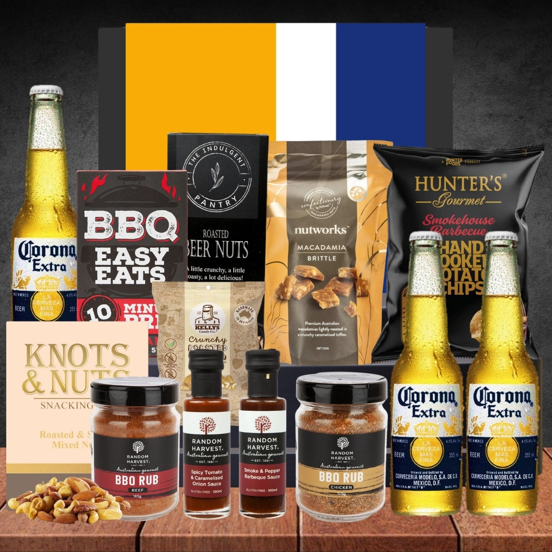 Enjoy the AFL Games with a stunning collection of BBQ and Beer! The hamper brings to you four bottles of Corona Extra alongside barbecue condiments such as Random Harvest Beef BBQ Rub, Chicken Rub, Smoke & Pepper Barbecue Sauce and Spicy Tomato & Caramelised Onion Sauce. It is the right touch for all your AFL gatherings and game nights this year!