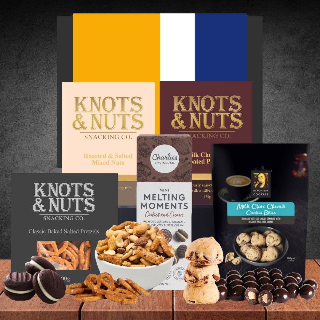 Be a great sport and support your recipients to cheer for their favourite AFL team this game season. This beautiful AFL snack hamper features a classic collection of snacks such as Baked pretzels, cookie pouch, mini melting moments and more. It is perfect to snack on as you set your eyes on your game!