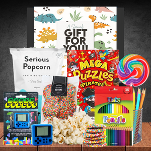 For the Pirates Puzzles, pencils, and popcorn. This boys hamper is for the colourful, creative kids to enjoy. With some colouring, mini arcade fun, and some delicious snacks, it's a pirates...