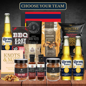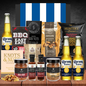 Beer, Game Chats and Great Competition!  Enjoy the AFL Games with a stunning collection of BBQ and Beer!  The hamper brings to you four bottles of Corona Extra alongside barbecue condiments...