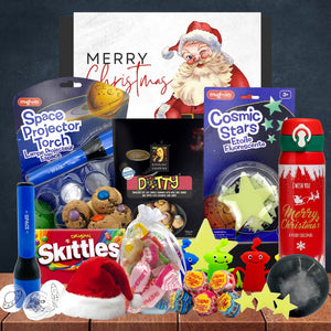 Are you looking for a perfect gift to impress a little astronaut this Christmas? This hamper is perfect for the little star to explore his alien chasing fantasies in outer space! Featuring a Space Projector Torch, Cosmic Glow-in-the-Dark Stars, Discovery Planet Glitter Water Ball and a 5 Y'all Outta Space Finger Puppets, your little champion is going to have fun! We have also included some exciting snacks to make them feel thrilled and excited with the hamper!
