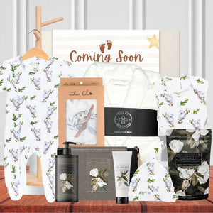 Show the new parents in town how you support them as they embark on their journey with their little one. This gorgeous mom and baby hamper is a beautiful way to appreciate them and celebrate together. This hamper features a classic range of baby products such as bibs, hats, baby outfits and pampa items for the mum.
