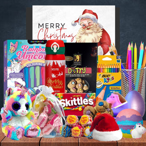 This enchanting hamper is packed with unicorn-themed surprises from a rainbow unicorn plush toy and bath bomb magic, to a colouring kit, squeezy toy and hatching egg for hours of festive fun. Add delicious treats like cookies, Skittles and lollies, plus a Christmas water bottle and Santa hat, and you’ve got the ultimate merry mix of playtime and sweet time.