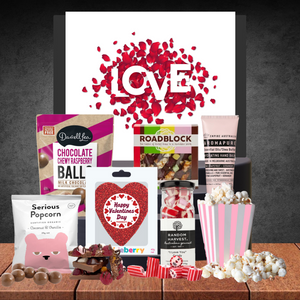 This Valentine's Day gift is for someone special, whether they're your girlfriend, boyfriend, galfriend, or anyone you want to send a little love to. With a great selection of delicious treats to enjoy from chocolate to popcorn, along with a hydrating hand balm, your Valentine's love will be received with joy.
