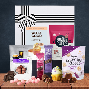 A perfect selection of yummy gluten free treats. This hamper makes for a delightful gift for your gluten intolerant family and friends, and includes a fun cake mix to keep you busy.