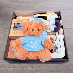 This hamper is presented in a premium gift box which is packed with stylish tissue paper and finished with a special Baby inspired decorative sleeve, and all our hampers come with a free "For You" gift card, printed with your personalised message.