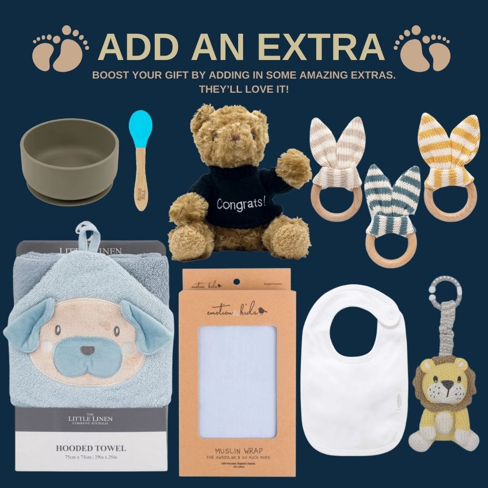 Let the beautiful moments be enriched with elegant baby essentials. This hamper is presented to you in a premium gift box, wrapped in stylish tissue paper and finished with a decorative sleeve to match the occasion. You can leave your thoughtful messages on the free gift cards attached to each hamper. Pour your love into the baby recipients with this hamper!
