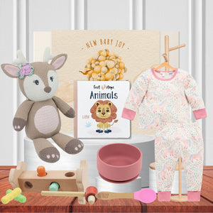 Baby's 1st Birthday is the perfect milestone to celebrate and send a gift to show them how much they mean to you. This gift hamper is filled with everything they will need.