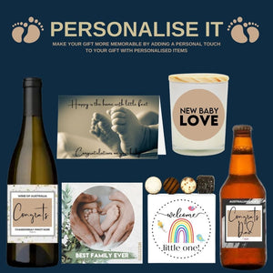 Contained within a high-quality gift box, this hamper is meticulously arranged with elegant tissue paper and adorned with a distinct decorative sleeve, capturing the essence of Baby. Complementing all our hampers, an included "For You" gift card bears your personalised message, free of charge.