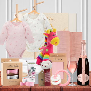 Pink Love with Bubbles Toast to the joyous arrival of a newborn with effervescent delight. This gift offers an impeccable way to stylishly welcome the newest addition to the world. Encased...