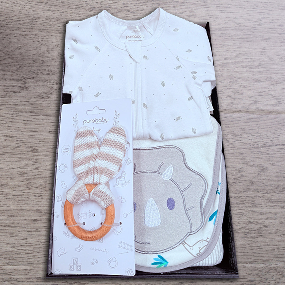 This Unisex Newborn Gift Set is presented in a premium gift box that is packed with stylish tissue paper and finished with a decorative baby sleeve. All our hampers come with a free "For You" gift card, printed with your personalised message, or you can pick one from our extras.