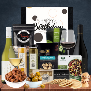 This is the best birthday hamper your recipients deserve! Featuring a classic bottle of Chapel Hill Abacus Chardonnay and Chapel Hill Abacus Shiraz each. You can also enjoy gourmet-level products such as Urban Larder Shiraz Peppercorn Shiraz Mustard and Urban Larder Tomato & Basil Mustard. Other essentials such as Valley Produce Co Cracked Pepper Crackerthins and Mount Zero Australian Green Olives make the perfect snack board your recipients deserve!