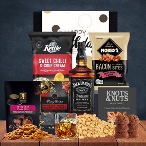Let the birthday boy celebrate their big day with Jack Daniels! This beautiful birthday bundle features a classic bottle of Jack Daniel's Old No.7 Tennessee Whiskey. We also have a collection of Aussie snacks such as Classic Baked Pretzels, Sweet Chilli & Sour Cream Chips, Rocky Road Bites Cookie Pouch and more. This hamper does not disappoint at all!