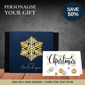 Personalise your gift and add a Happy Holidays Sleeve + Card perfect for celebrating their special day.