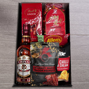 Give your loved ones the ultimate Chinese New Year's surprise with this beautiful array of products curated just for you! This hamper showcases a stunning bottle of Chivas Regal 12 Year Old Blended Scotch Whisky alongside a collection of scrumptious snacks such as Lindor chocolates, lucky candy and Potato Chips.