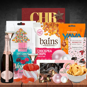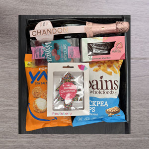 Send some extra love to your special someone with a vegan Christmas hamper. This delightful vegan hamper is specific to its diet. Featuring a beautiful bottle of sparkling rose your beloved recipient can experience scrumptious treats such as dark chocolates, Rocky Road, Chilli & Lime chickpeas chips and so much more. This hamper is ideal to gift away to your special lady or to simply devour together!