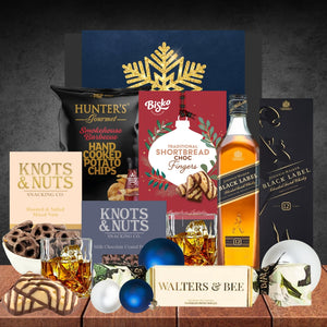 Classic Black Label Whisky Treat someone special this Christmas with a gift featuring Johnnie Walker Black Label, cherished for its smooth aromas and flavours. This delightful hamper includes delicious crisps and...
