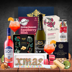 It's summer spritz time! This special cocktail gift comes with Sofi Blood Orange & Bitters and mixed with Prosecco, you've got a wonderfully refreshing cocktail to help celebrate the festive season. Finish it off with some delicious festive snacks and this hamper will satisfy your Christmas gifting needs.