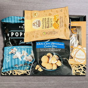 Nutty Snacks Time! A great combination of salty and sweet, this Christmas gift has your nutty cravings covered. Featuring popcorn, chocolate, nuts and cookies, it's the perfect snack goodie box for...