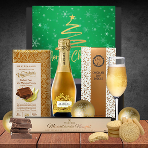 Sparkling Delight Enjoy bubbles? With a mini bottle of Chardonnay Pinot Noir paired with delicious cookies, chocolate and sweet fudge, this is a tantalising Christmas treat. This treat box has a...