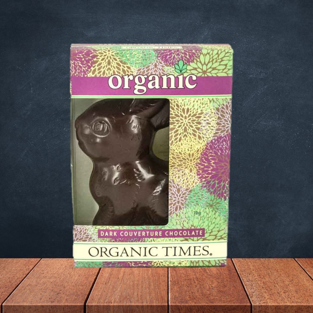 Indulge in the rich and decadent flavours of Organic Times Easter Bunny Dark Chocolate.