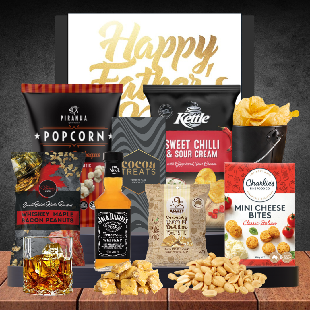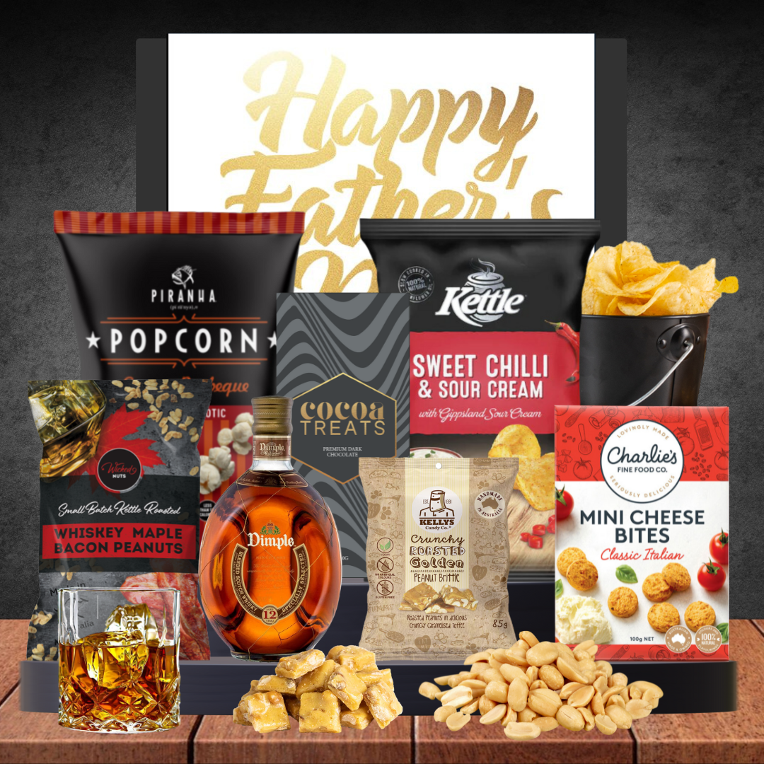 Show your dad that he is your life’s hero with a bundle of booze and snacks! This hamper gives you a choice of 04 stunning whisky brands to choose from: Chivas Regal, Dimple, Johnnie Walker Black or Jack Daniels No.7! Savour each sip with crunchy snacks around Australia. Enjoy Salted Pretzels, Roasted Salted Mixed Nuts and Sweet Chilli & Sour Cream Chips with your dad!