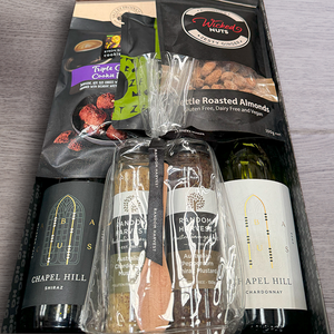 Your dad’s a Chapel Hill fan? Give him the best of both worlds with Chapel Hill Abacus Chardonnay and Chapel Hill Abacus Shiraz this Father’s day! Embrace the love of Crackerthins, Australian Green Olives, Spiced Cinnamon Almonds and Chunky cookies to experience the love of Aussie treats!