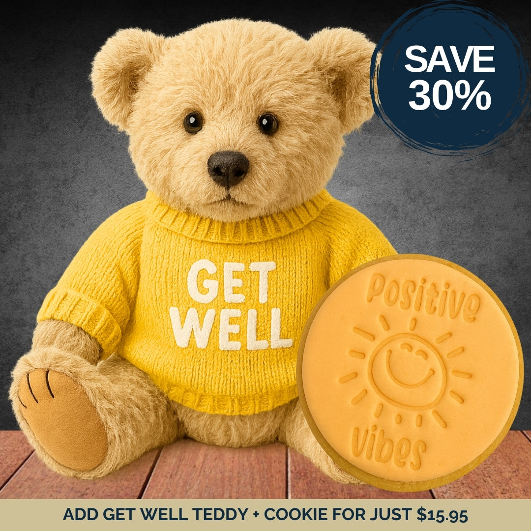 Get Well Teddy + Positive Vibes Handmade Cookie Add this to your gift and save 30%