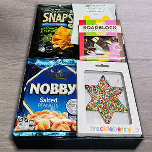 With popcorn, chocolate and cookies, this petite goodie box is seriously good. Looking for something cute and yummy, our Goodie Boxes make a great little snacking treat with a collection of delicious goodies to enjoy.