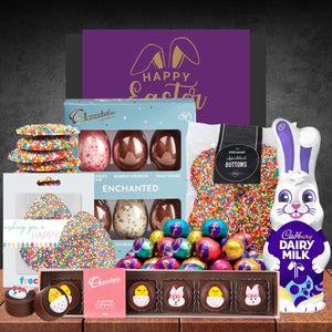 Chocolate, Chocolate, Chocolate Who doesn't love all the Easter chocolate? This Easter gift is perfect for the Easter bunnies around you to enjoy with traditional favourites like Cadbury eggs and bunnies...