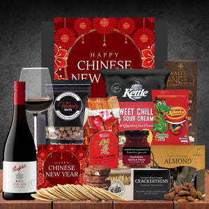 Looking for a special gift to surprise your special someone this Chinese New Year? You've got a perfect culture and modern Chinese New Year hamper for her. This fancy hamper features a vibrant bottle of Penfolds Max's Pinot Noir, with a range of cosy snacks that can keep your recipients occupied this Chinese New Year! Enjoy some nibbles such as crackers and quince, chocolate sprinkled stars, Chocolate Nougat Biscuit and more. Enjoy this perfect mix of snacks during your Chinese Celebration!