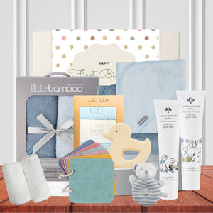 This Baby Boy's Complete Bathtime Care is presented in a premium gift box that is packed with stylish tissue paper and finished with a decorative baby sleeve. All our hampers come with a free "For You" gift card, printed with your personalised message, or you can pick one from our extras.