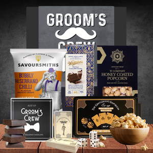 This special Gift Hamper is presented in a premium gift box which is packed with stylish tissue paper and finished with a special Groom's Crew decorative sleeve, and a free "For You" gift card, printed with your personalised message.