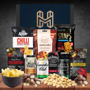 A collection of whiskey and rum mixers combined with infused peanuts and spicy chips make this hamper a great option for those mixers lovers. Suitable for any occasion from Happy Birthday to Thank You, this hamper is a gift the recipient will welcome and remember will glee.