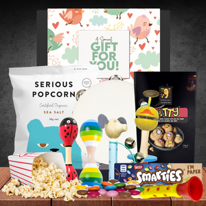 Music is awesome, especially when enjoyed by kids. Bells and maracas, trumpets and drums. All things noisy that kids just love to dance around with, and a few delights to snack on. This kids hamper is definitely a winner. *Warning, parents may dislike you after gifting this delight :)