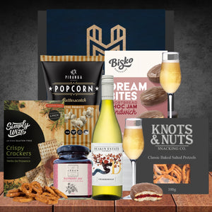 Simply Sparkling Indulge in the perfect blend of sweet and savoury delights with this hamper, complete with a bottle of Deakin Estate Chardonnay. Cheers to a delightful treat! This Gift is presented...