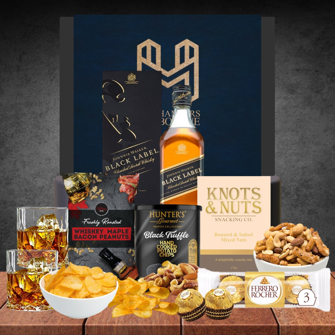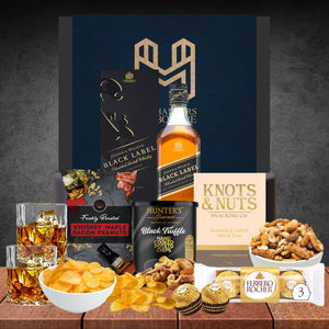 A whisky and snacks hamper that makes a great gift for him or her. Choose their favourite whisky from a selection including Australia's award winning Starward, Chivas Regal, Johnnie Walker Black, Jameson, Dimple, or Jim Beams Devil's Cut. It's whiskey perfection for anyone to enjoy.