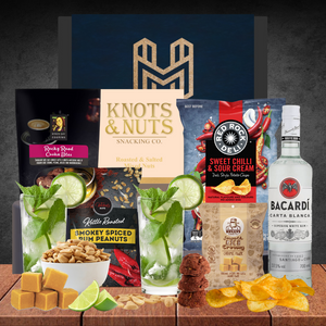 Bacardi Carta Blanca White Rum is a must-have for any cocktail enthusiast. Paired with a variety of snacks that complement the rum's fruity and floral notes, this gift promises a delightful celebration. Enjoy it with fresh juice or mix it into your favourite cocktail. This gift is sure to impress your loved ones.
