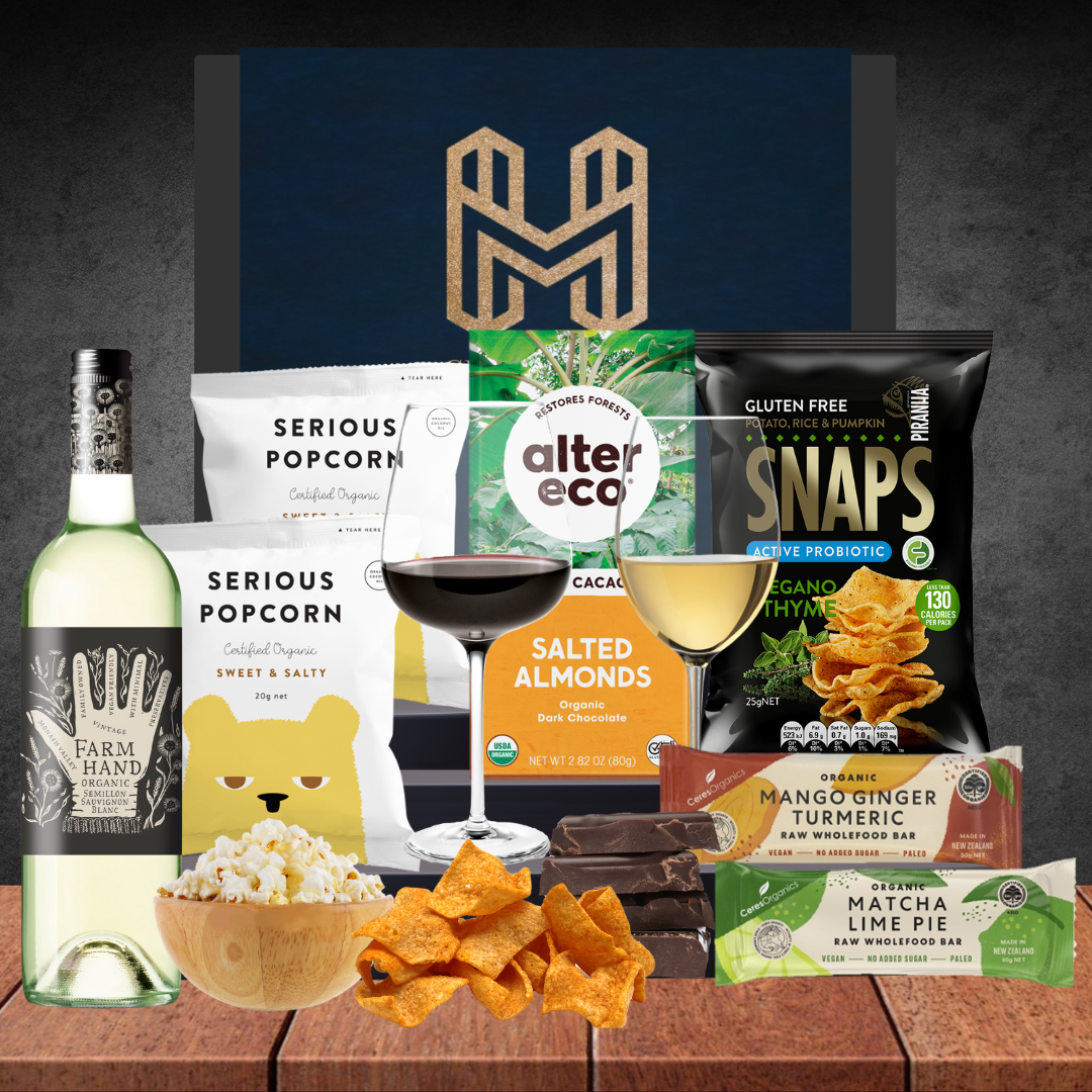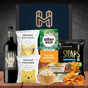 This Vegan Friendly hamper comes with a choice of Shiraz, Semillon Sauvignon Blanc or both wines from Australia's Farm Hand. Combined with vegan snacks, this will keep you vegan family, friends, colleagues, staff, everyone happy!