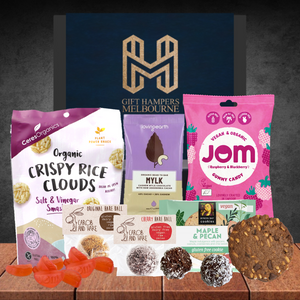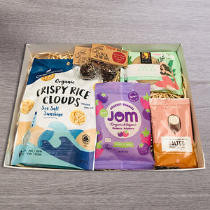 This Vegan snack pack is a great little gift for your friends, family and work colleagues. Boosting energy with protein balls, munch on rice clouds, and end with a little sugar hit with some delicious vegan lollies, it's a vegan friendly snack delight.