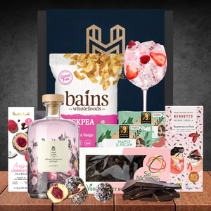 A Gourmet gift with yummy snacks and Tread Softly's Botanical Pink Gin. What an awesome gift to celebrate any occasion with your friends and family! And a bonus; it's all vegan friendly and gluten free. Awesome!
