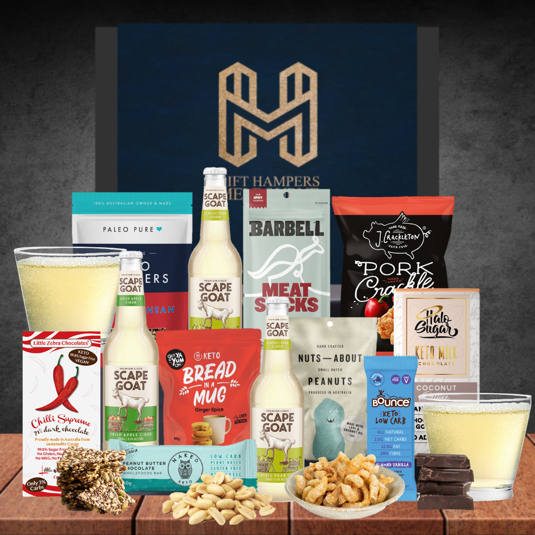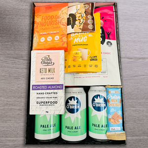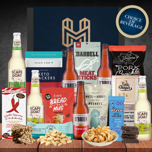 Keep the sweet and savoury cravings at bay with this Keto friendly, gluten free gift. With your choice of O'Brien's Gluten Free Beer or Scape Goat's Gluten Free Cider, you're on to a true dietary treat.