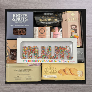 Sending Love To Mum A foodie delight! This Mother's Day gift is to be enjoyed and comes with buttery shortbread, salty pretzels, sweet nougat, creamy chocolate and so much more. A...