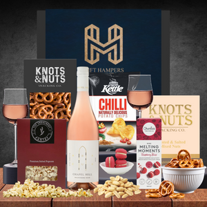 Pamper her with this cheerful gift basket! Open a bottle of the refreshing Chapel Hill Abacus Rosé, perfect for a relaxing day. She’ll be thrilled to find an assortment of sweet and savoury treats, including delectable raspberry "melting moments," crunchy pretzels, and a mix of nuts. It's the perfect combination for a little pick-me-up or a delightful afternoon tea.